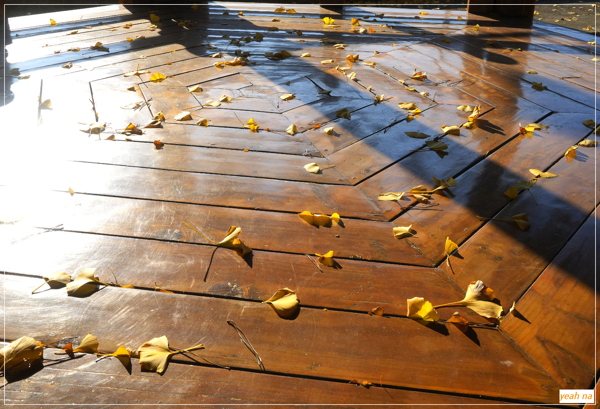 보도 위에 낙엽이 깔려